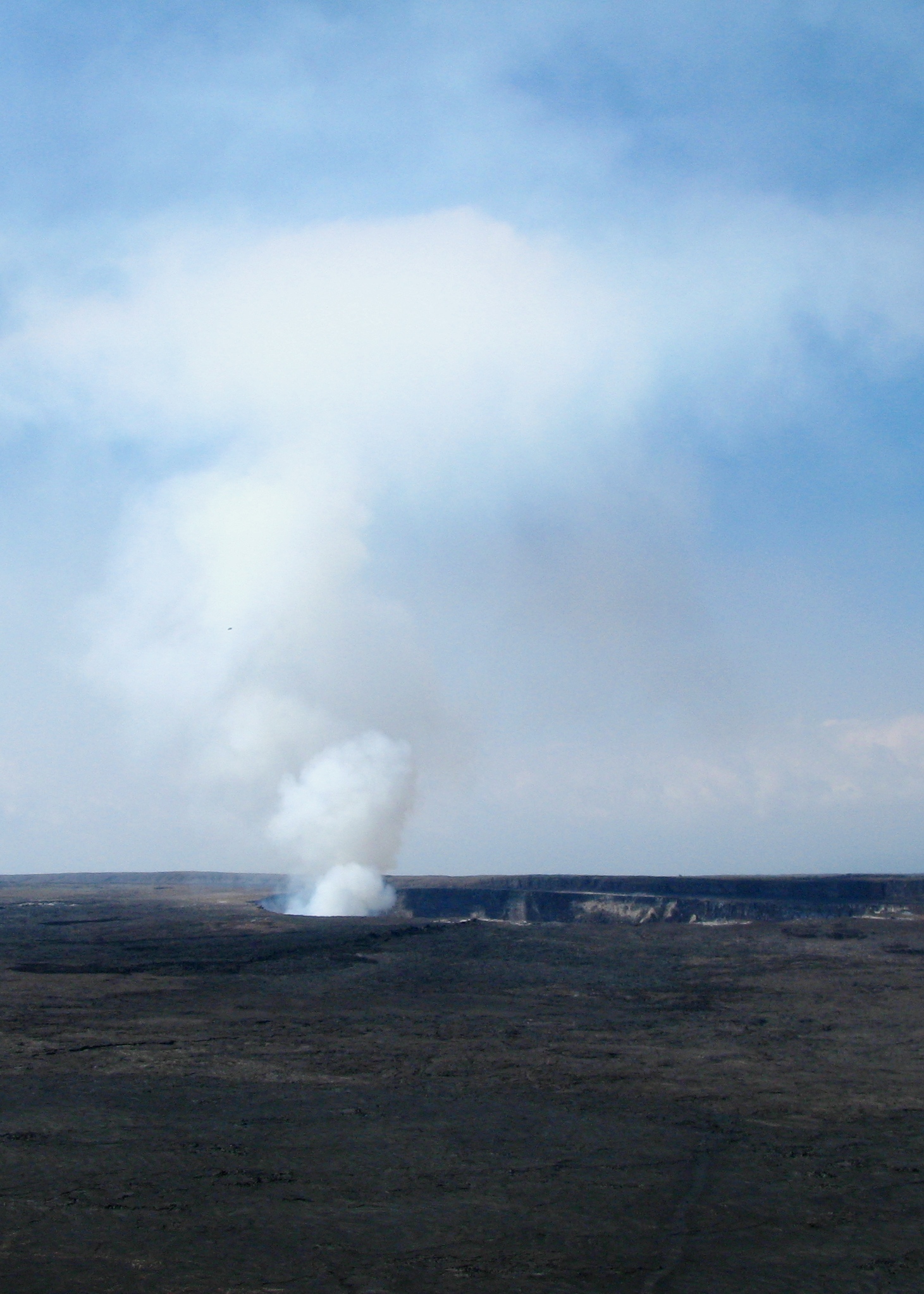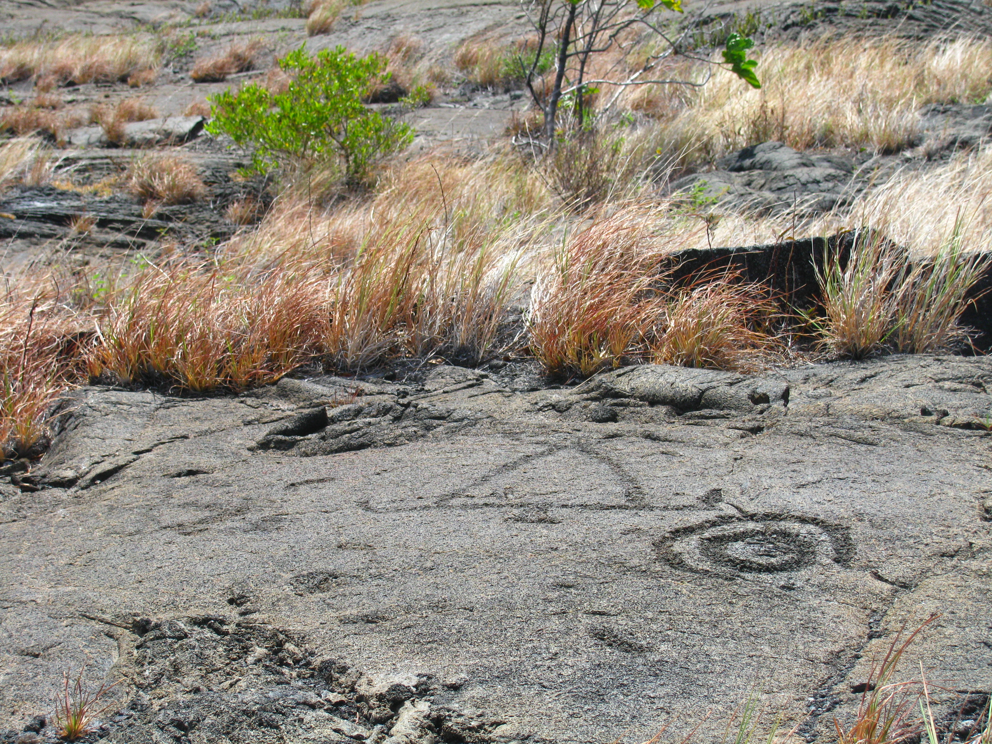 Saturday we got up fairly early and did some longer trails (a couple of 1 1/2 mile trails and then a 5 mile loop). One was to a site where there are 500 to 700 year old petroglyphs that were amazing. We also walked through a very old and completely inactive lava tube, and then down a winding path to the floor of a caldera that about 50 years ago erupted as a lake of lava, but which is now about 400 feet thick of rock with a few steam vents. We walked partway out into the caldera and then doubled back rather than taking the long way back to the car because we wanted to drive around to the side of the island where you can see lava flowing into the ocean.