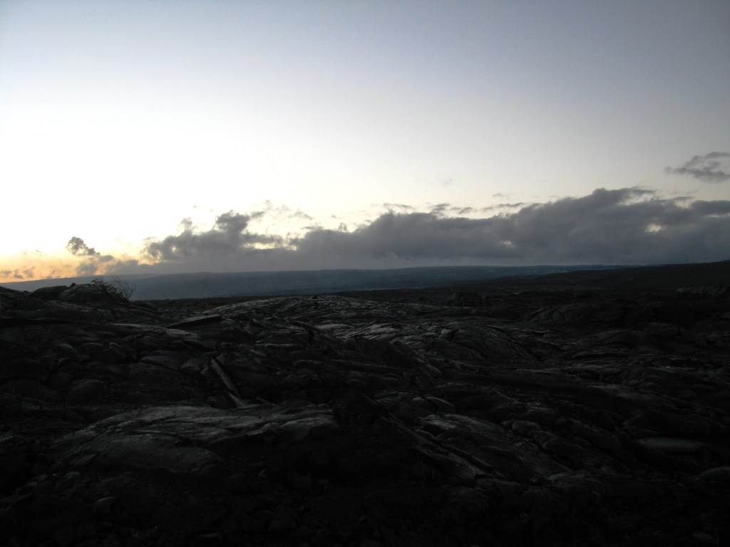 We got to the lava viewing area around sunset and discovered that the only way to see lava is to pay (a lot) for a tour to have a “guide” walk you out to it. That seemed a bit much, so we stayed in the main area where you could see the steam clouds rising above the spot where the lava is apparently gushing into the sea. We did see (at a loooong distance) a bright speck that was a lava burst waaaay up on the hillside, but that was about it. The stars out there were amazing, though.