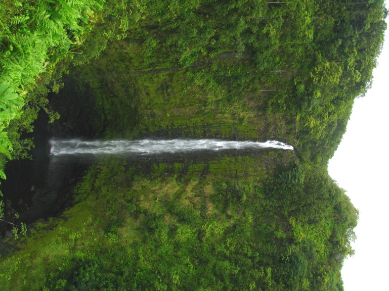 Sunday we left the volcano area and drove back to Hilo, where we toured Mauna Loa Macadamias processing plant and visitor center, went to the Pana`ewa Rainforest Zoo and then went to about four or five waterfalls. It was beautiful. On the way back from the northern-most waterfall, we saw a detour that said “scenic drive,” so we took it and found the Hawaii Tropical Botanical Garden, which was gorgeous, and full of tropical plant species from all over the world. It went down into a valley and eventually to a steep part of the coast with big waves crashing.Then we finished the drive and wound up back in Hilo for dinner, returning the rental car, and our flight home. The Big Island is, I think, the most beautiful island I’ve seen here. ^_^