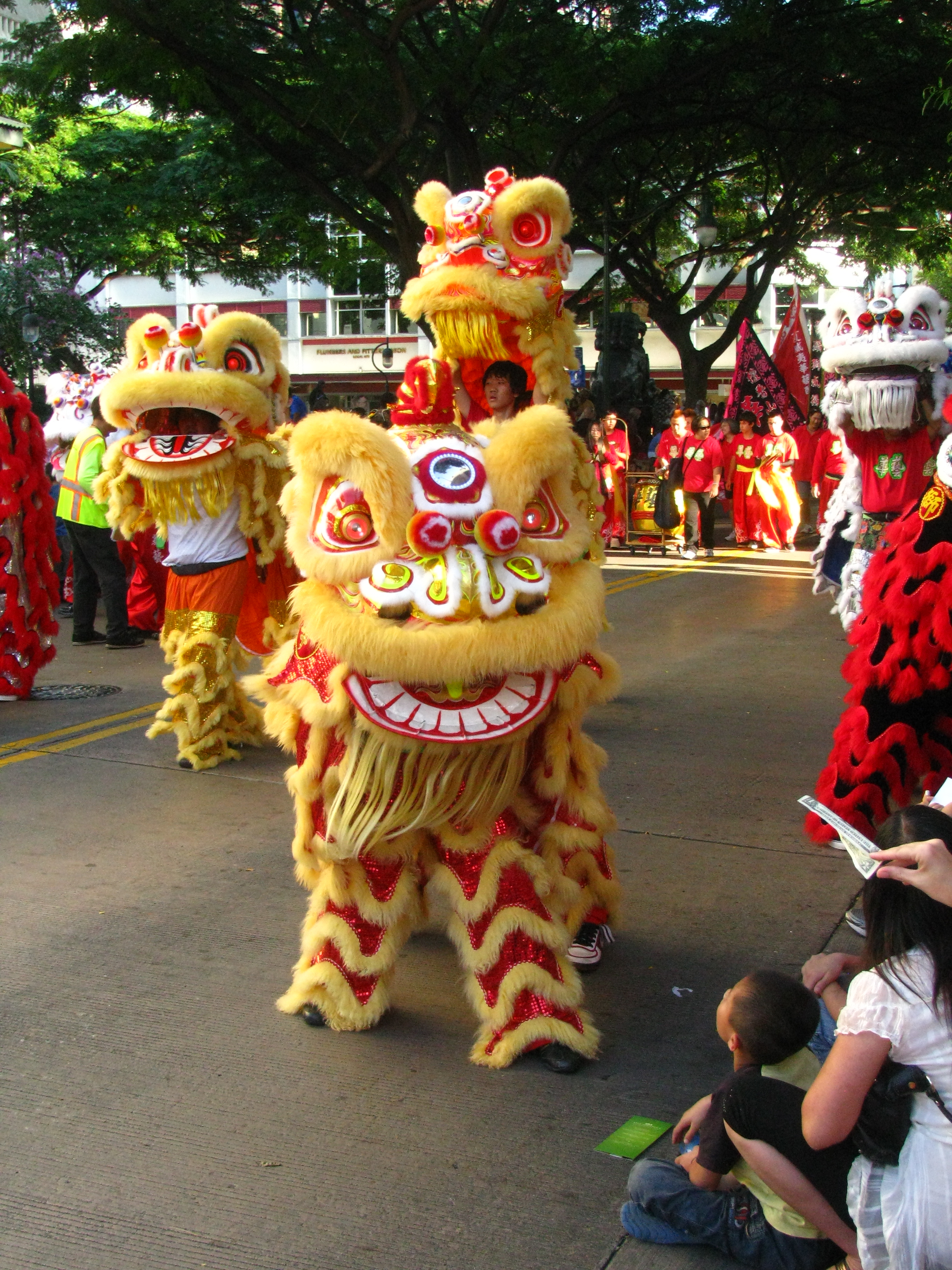 After the whale count, J and I went home for lunch (and to shower– it gets hot and dusty out there), then headed downtown to the Chinatown district for the Chinese New Year celebration. It’s the Year of the Rabbit this year and they had their usual big parade and festival and street foods (we definitely had noodles and coconut jin deui— yum!), including the lion and dragons dancers I like so much.