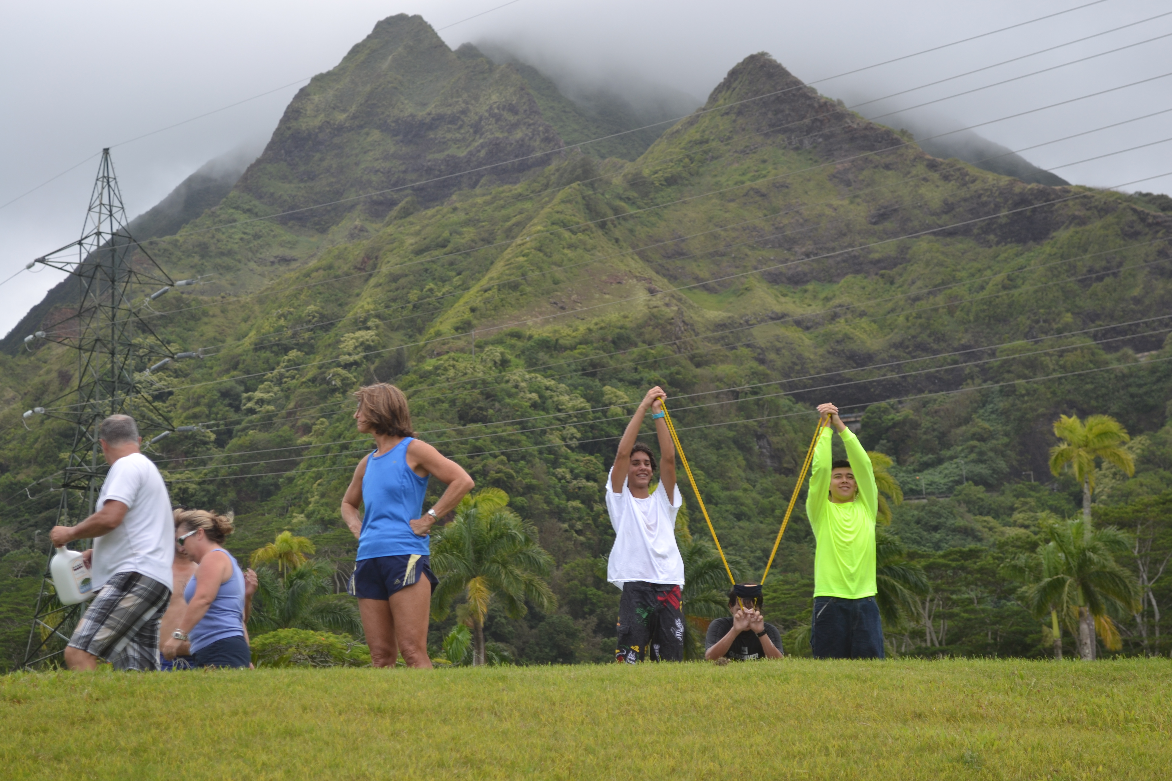 On Saturday morning the youth leaders gathered at the church’s driving range (we’re located on a golf course, long story) and started pulling out rolls of 20 foot wide, industrial strength plastic. We had been generously loaned the driving range for a large chunk of the day… so over the course of 2 and a half hours we used the plastic, some tent stakes, a couple of hoses and a very large quantity of dish soap to create a 250 foot long water slide.