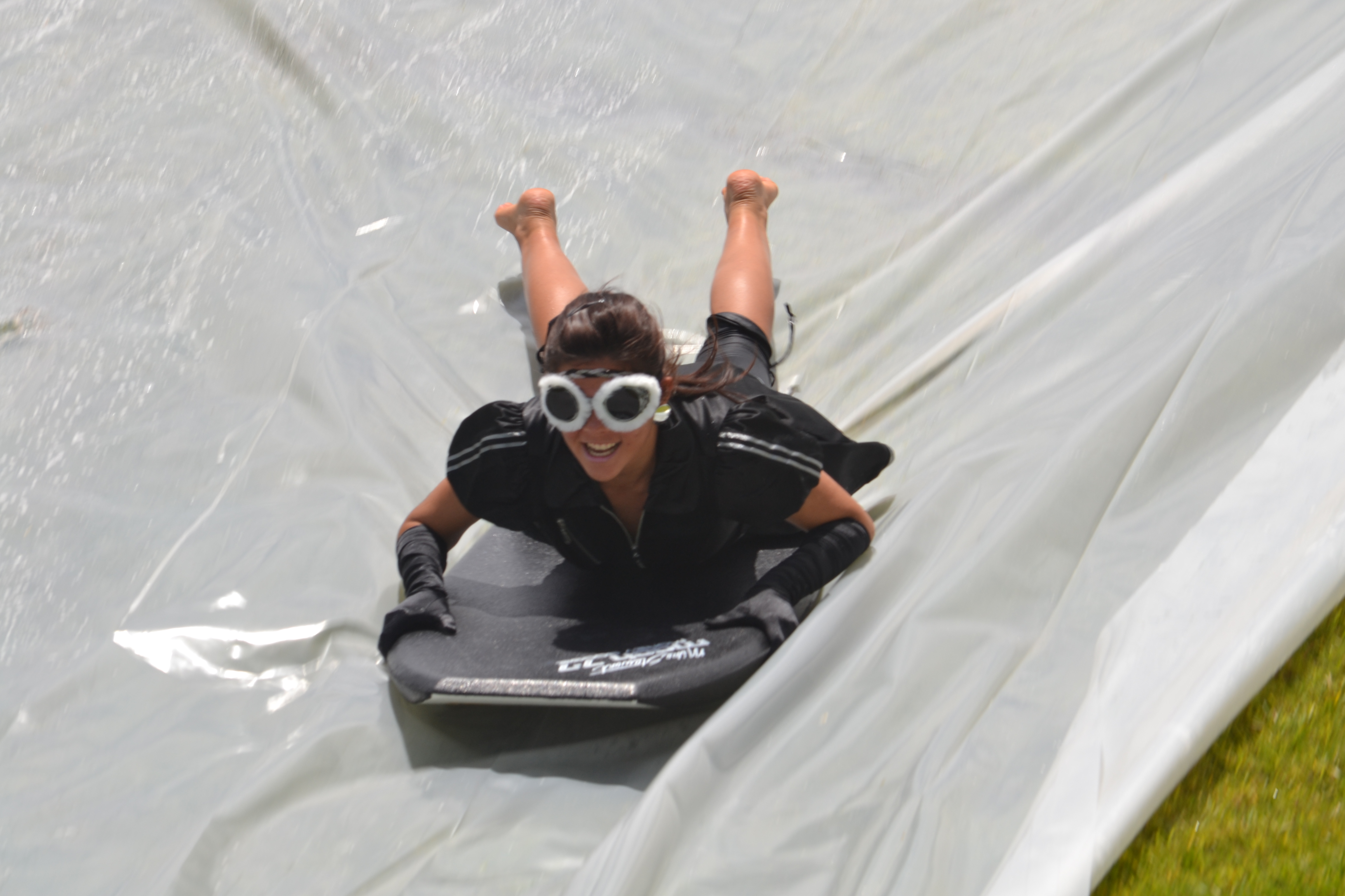People started coming around noon and by 1:30, we had a huge group. Some were wearing costumes but most just came in bathing suits. Everyone got soapy and soaking wet and even muddy (when the slide got too slick and people shot off the end of it) but it was such an awesome experience. Everyone had a blast.