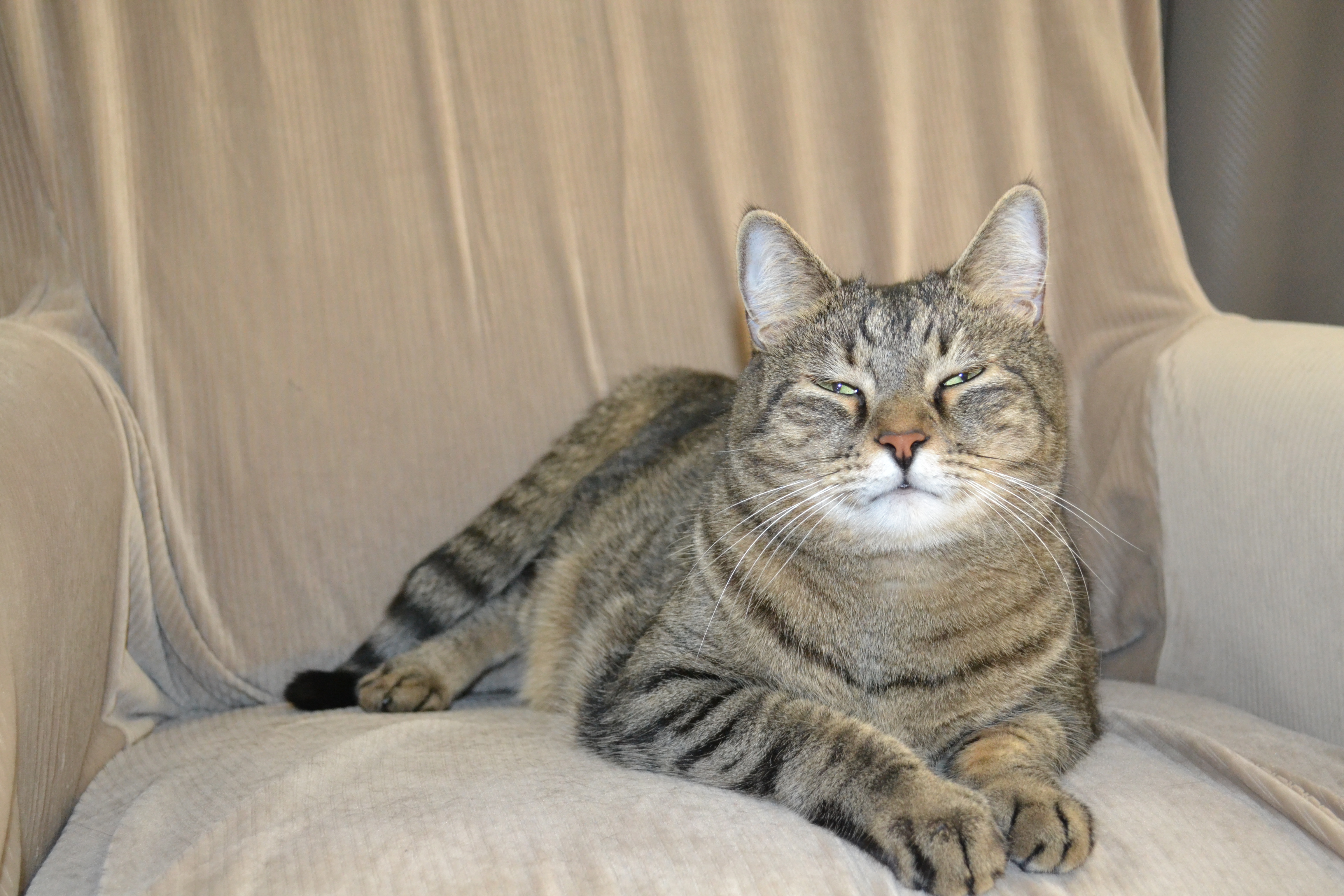 So that’s been my rearranging. It’s mostly just the stuff on the walls (probably to J’s relief, if he reads this– I promise you won’t come home to all new furniture!) and I’m MUCH more pleased with it now. And if all of this was BORING to you, have a picture of Caspian looking judgmental.