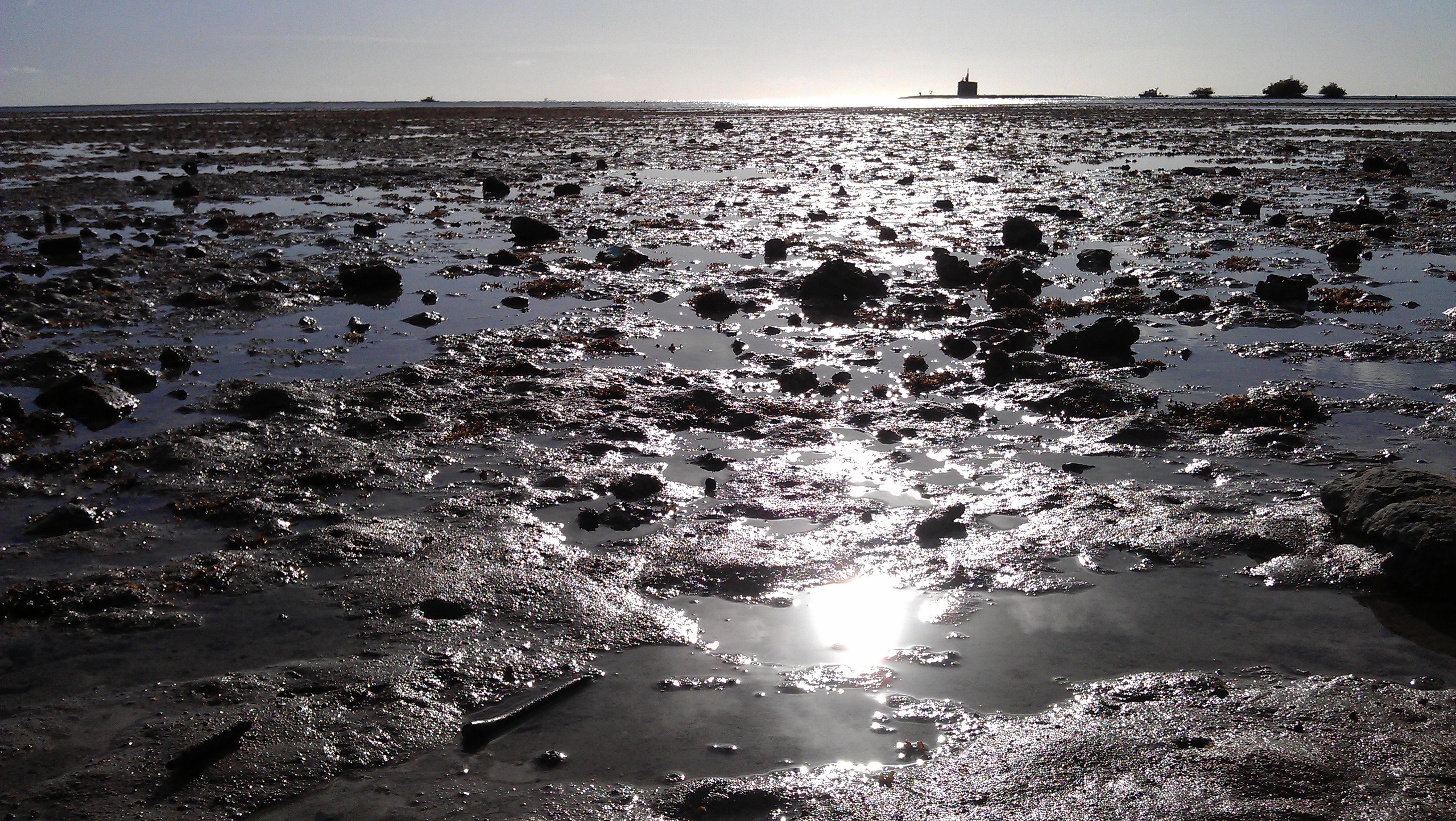 The tide was lower than I’ve ever seen it. A submarine went by in the channel, but looked like I could have walked to it.
