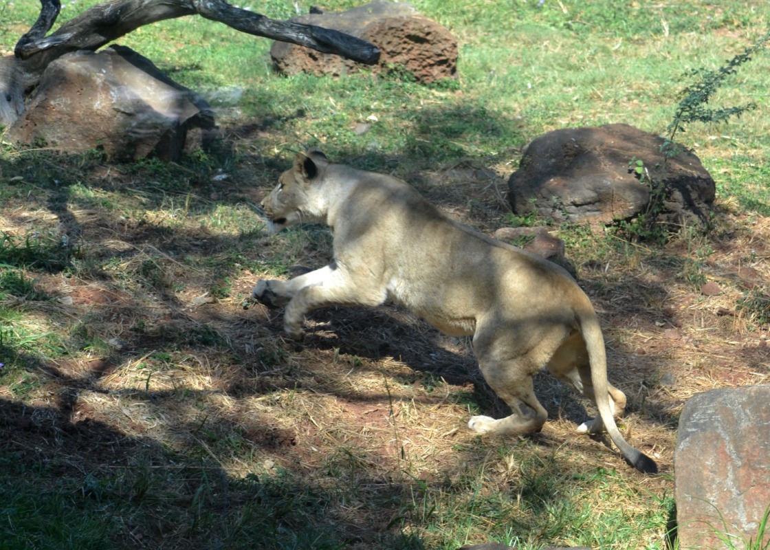 Moxy saw a dove in her exhibit and almost caught it.