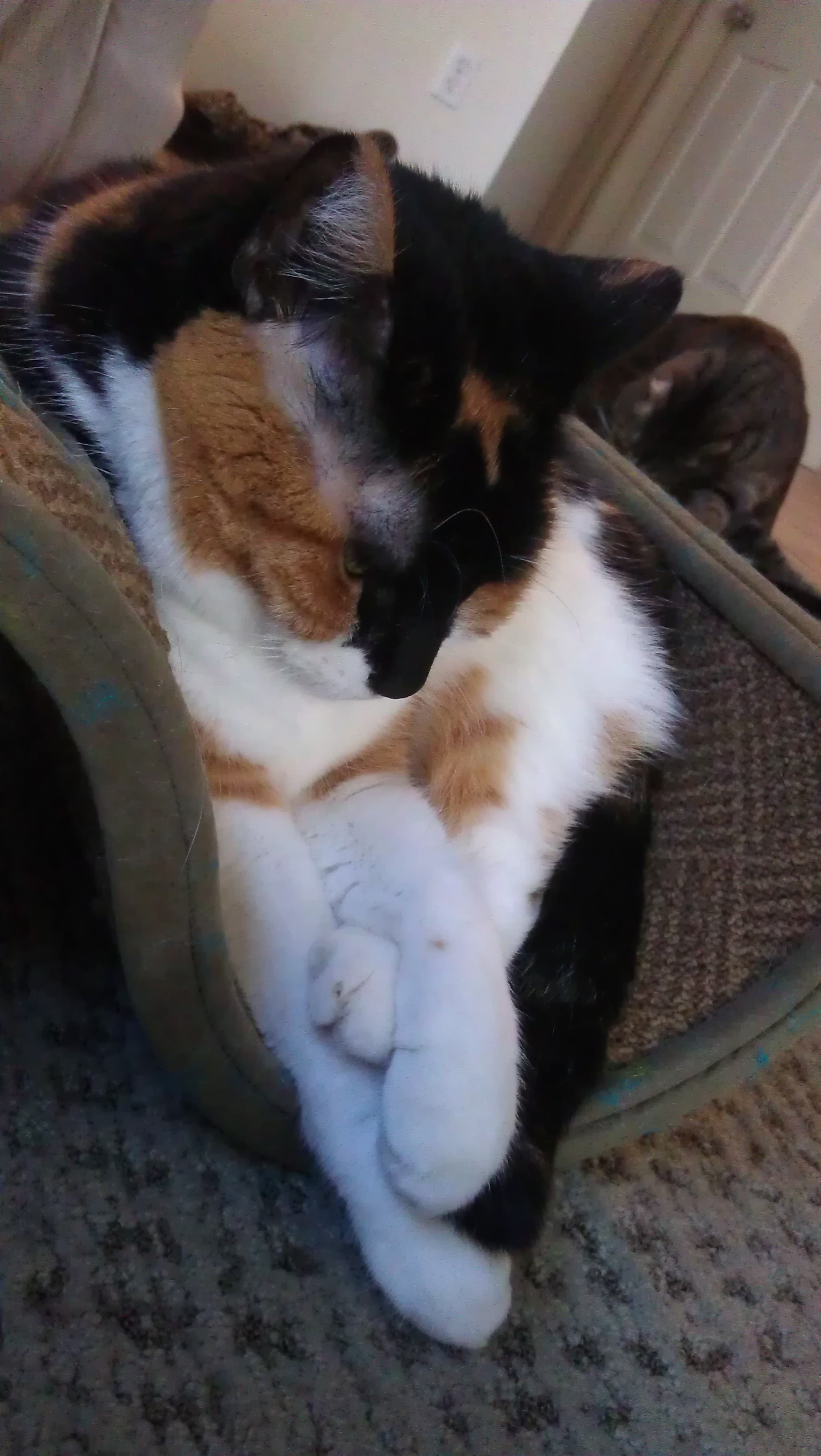 1/22/2012 Lack of a “thing I did today” photo because I spent most of the afternoon/evening just relaxing and playing with the kitties. Leena all squished into her seat was cute, though. ^_^