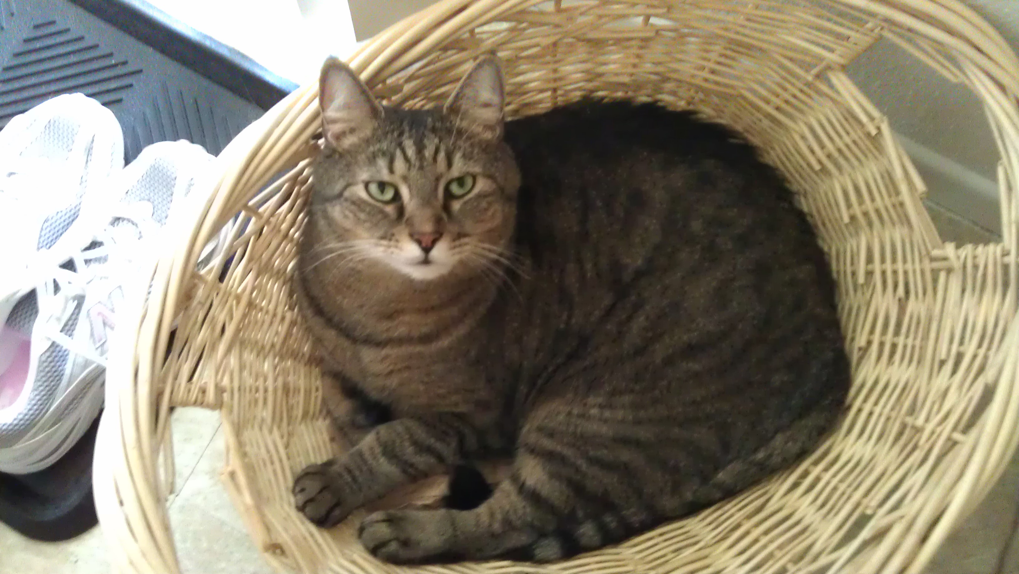 By Saturday when I finally got home I was beyond exhausted and the only photo I seem to have is of Caspian in a basket. Again. I take a lot of cat photos, but I really do try not to subject you to them…