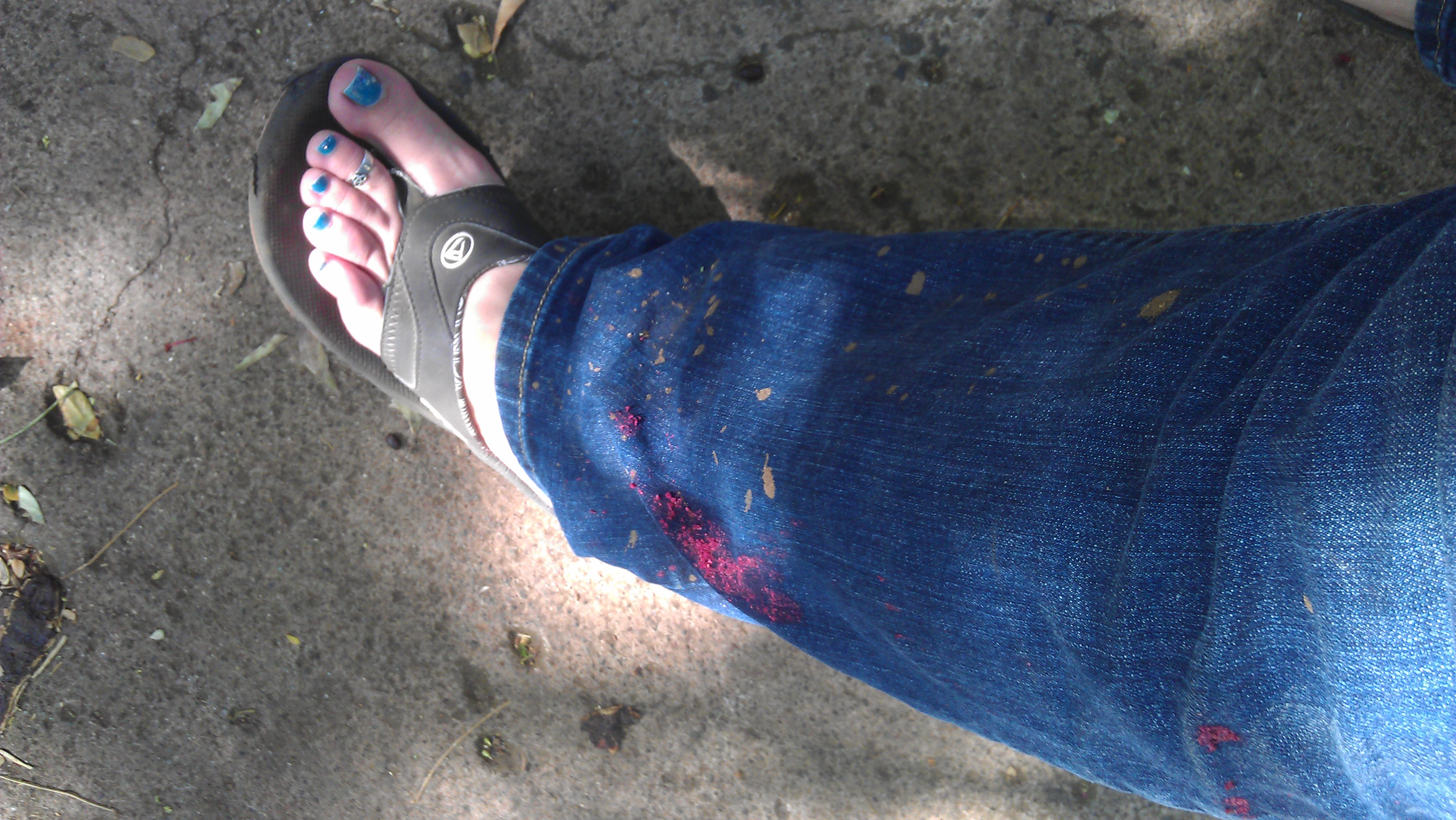 Thursday as I was leaving the zoo I joked that I looked like I was coming from a crime scene. I took a photo of one leg (though the rest of me looked similar) as proof. The brown is mud/sludge from the rhino yard and the red is pureed beets that we gave to the baboons. Unfortunately the beets leaked through the container and went all over me, staining my hands and clothes (and skin under my shirt even) red. At least I was able to wash off all of it eventually.