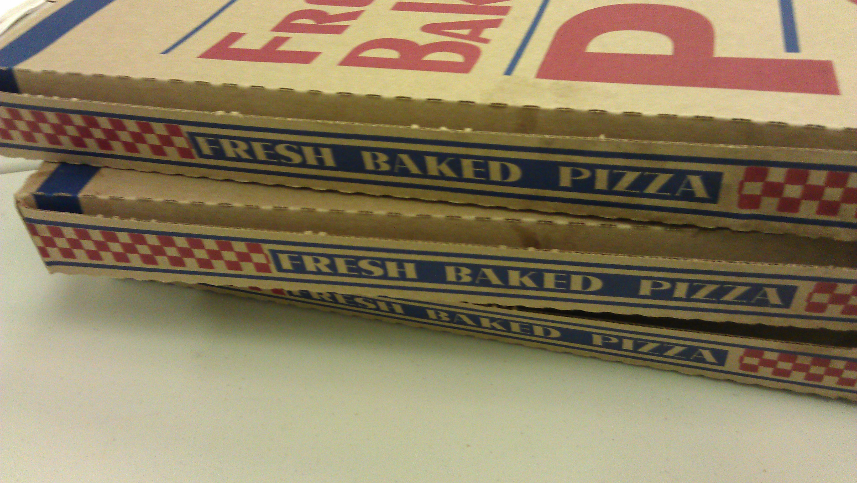 This photo was taken because I’d forgotten to take one on Friday, but it’s the stack of empty pizza boxes that we have every single Friday night after our youth event.