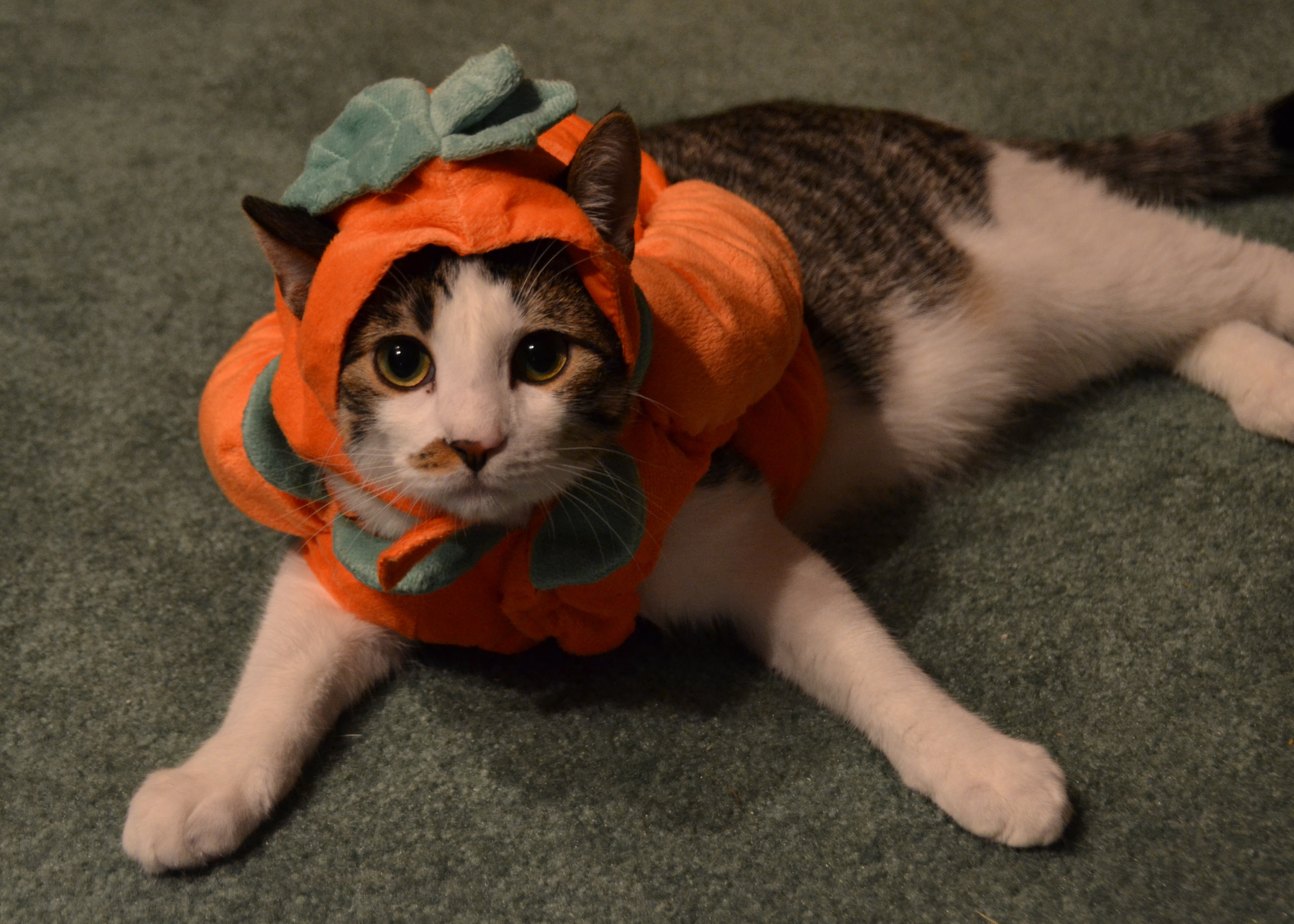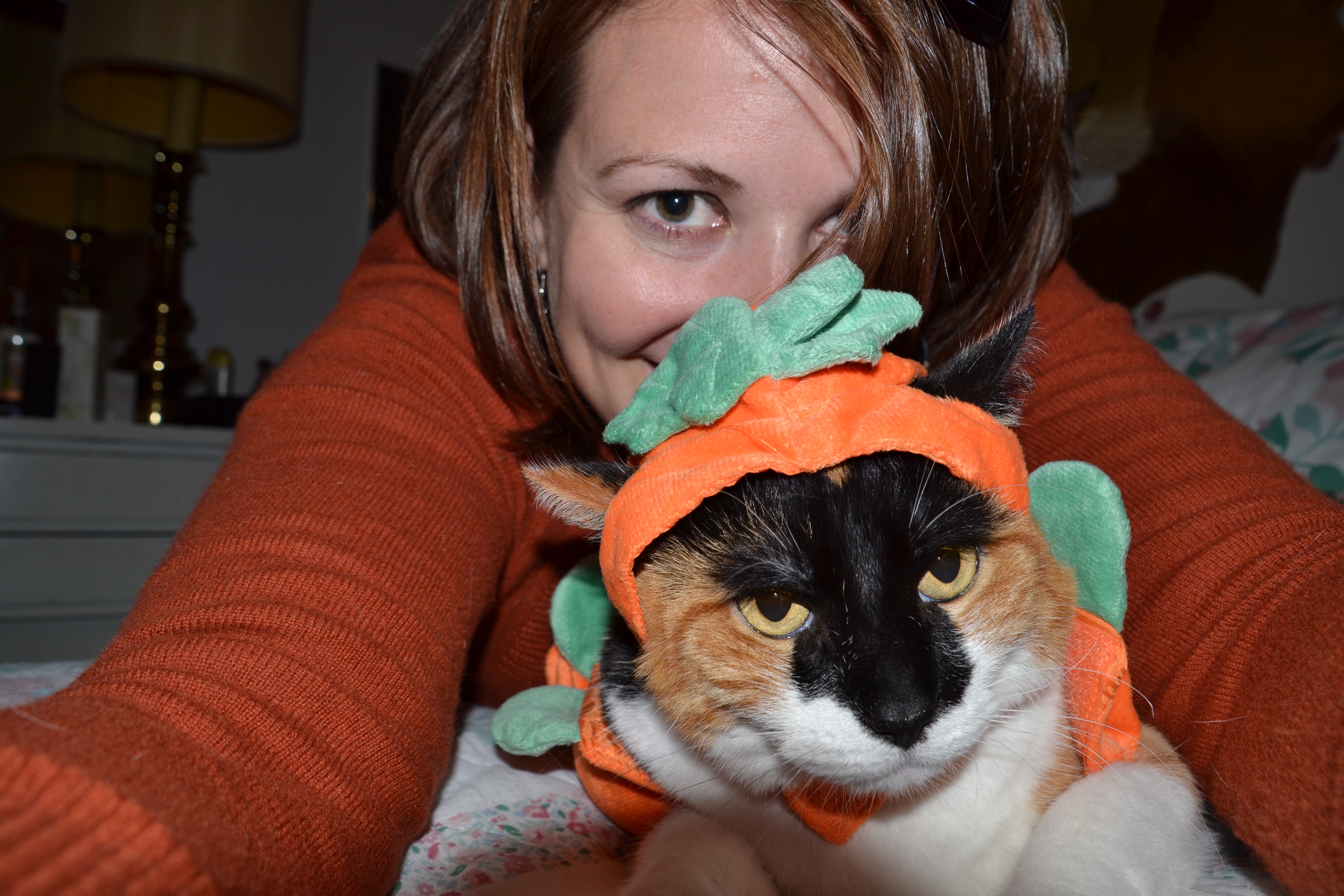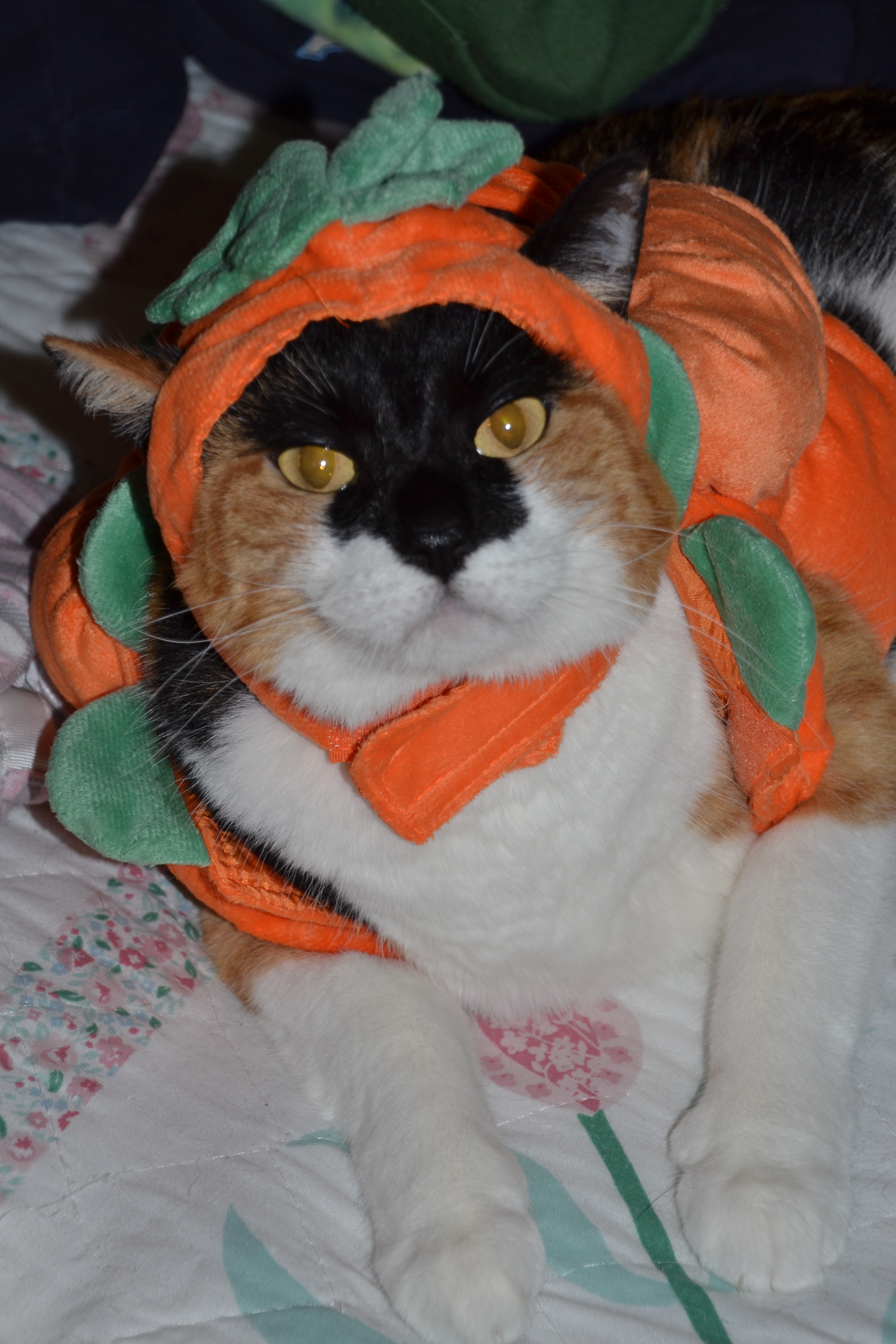 So there’s my gift of Halloween kitties. I would like to say that although black cats are more traditional, my patchwork calico has all of the Halloween colors in one and looks much more festive sitting in front of the window. ^_^