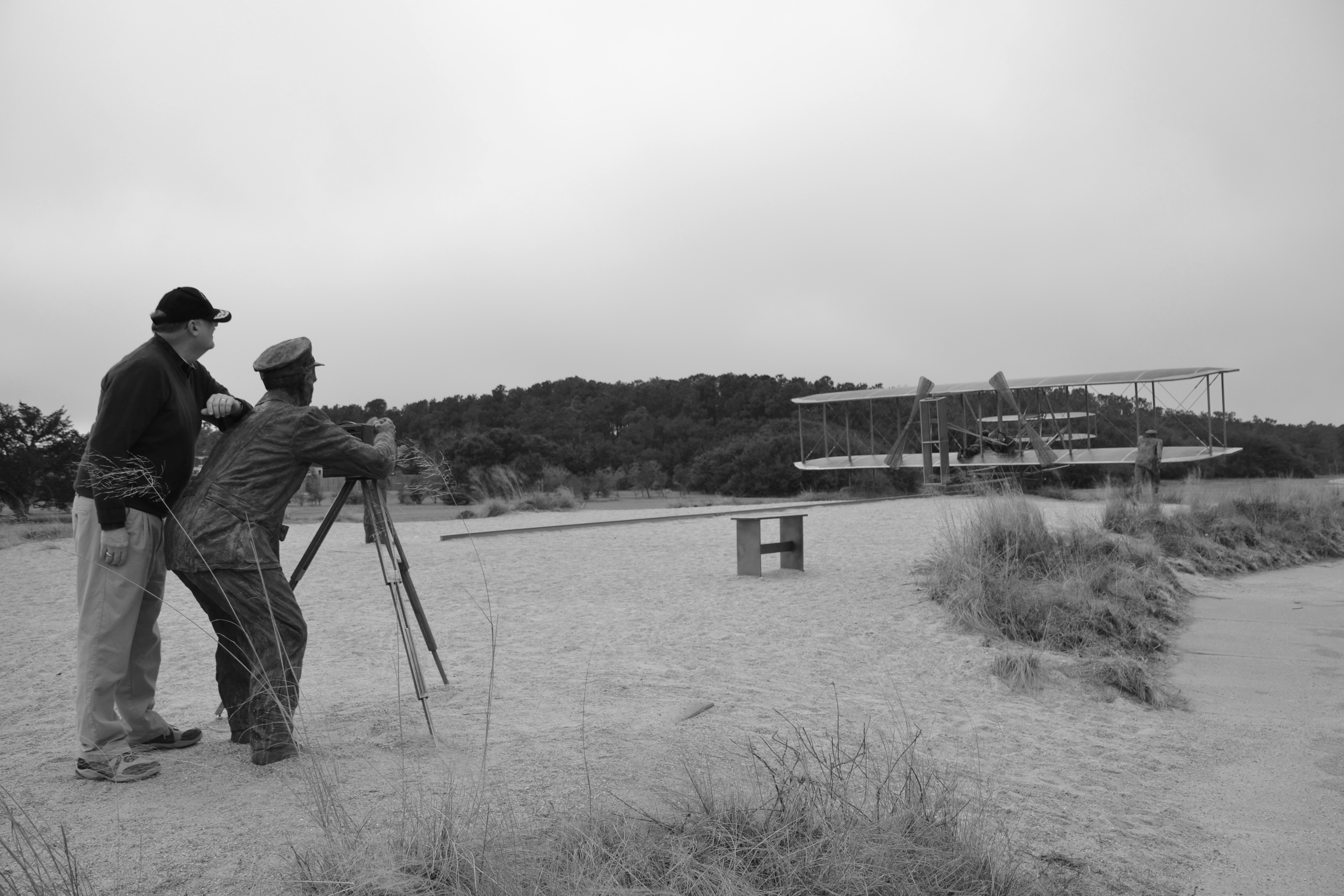 We started our trip with a stop at the site of Wilbur and Orville Wright’s first flight, in Kill Devil Hills near Kitty Hawk. There is a reproduction of the flyer there, as well as a museum and monument, but to me the coolest part is that the original flight line is marked, so you can stand and see exactly where they were, and how far they went.