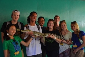 After lunch we took a tour of Puerta Princesa, and wound up at a nature preserve and crocodile farm. They breed the local endangered crocodiles and have a lot of other native species, too, including sea eagles and binturongs, which I have always wanted to see in their native home. Oh and I got to hold a baby crocodile! 😀