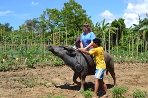 Not the most flattering photo ever, but all the kids rode the water buffalo (named Rosalinda), so I did, too. Here is proof.