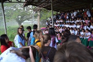 We all packed into their outdoor auditorium just the same, and in less than thirty minutes, the rain cleared and everything became bright and sunny again. The high school students there seemed to really enjoy our visit, too.