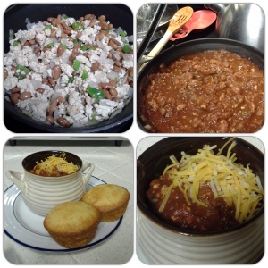 The other night, I browned a lot of ground turkey and had quite a bit left over. Since it’s been so chilly out lately, I decided to make chili!