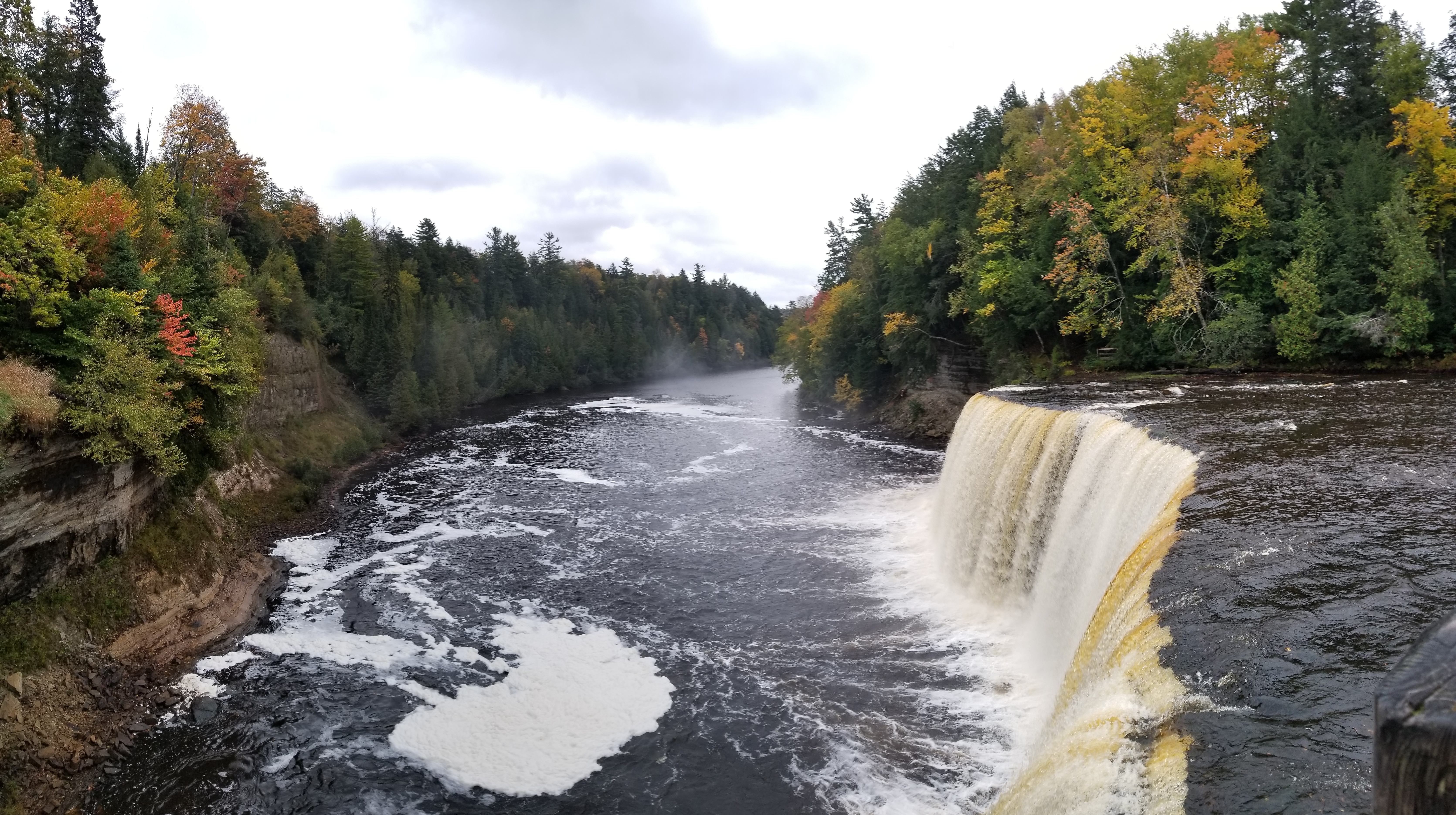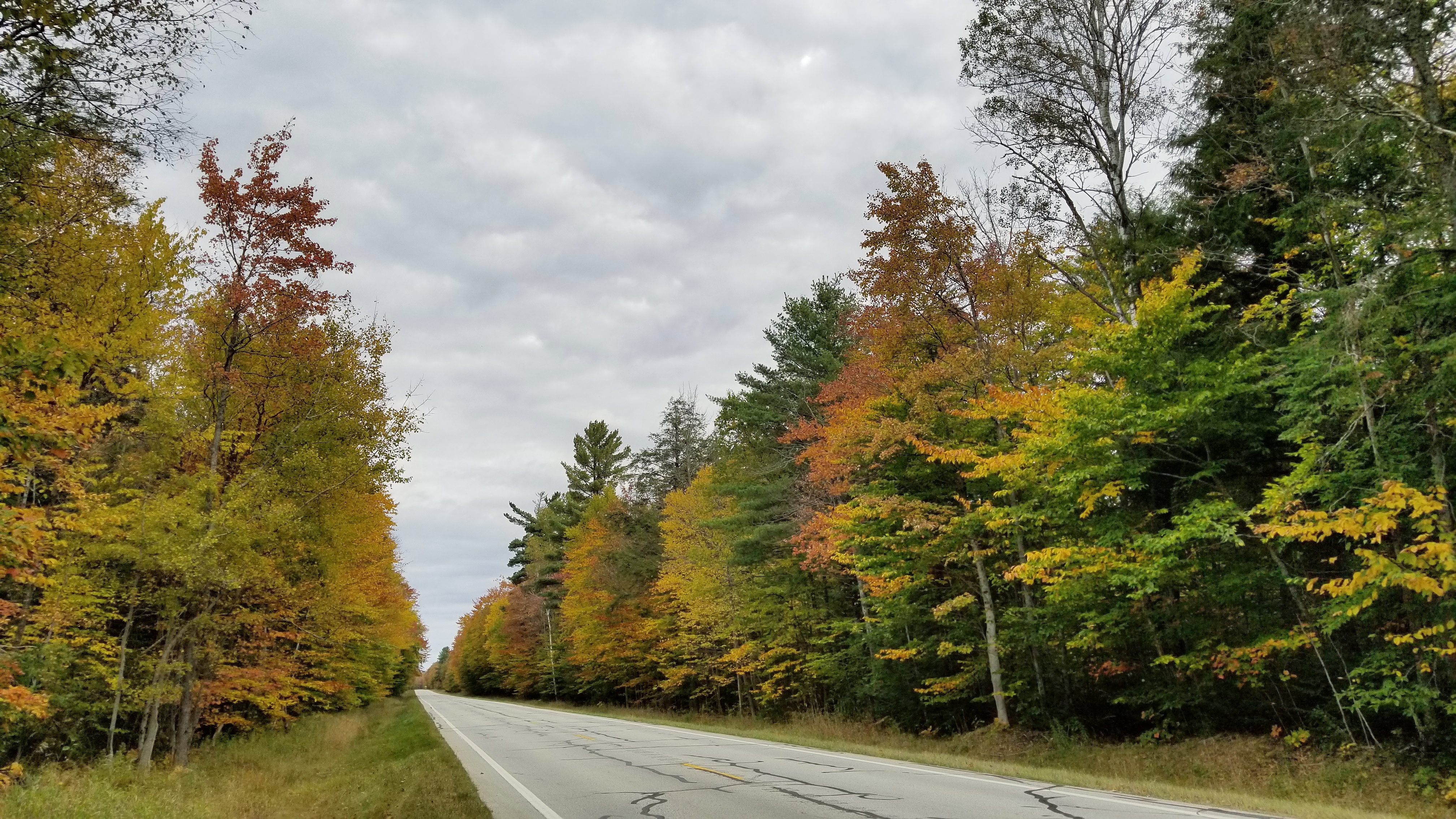 The leaves were just coming into the start of their peak, and the ones around the waterfalls were mostly golden with a few shots of red thrown in. The roads between the UP towns had more autumn color, and I kept stopping the car to take photos.