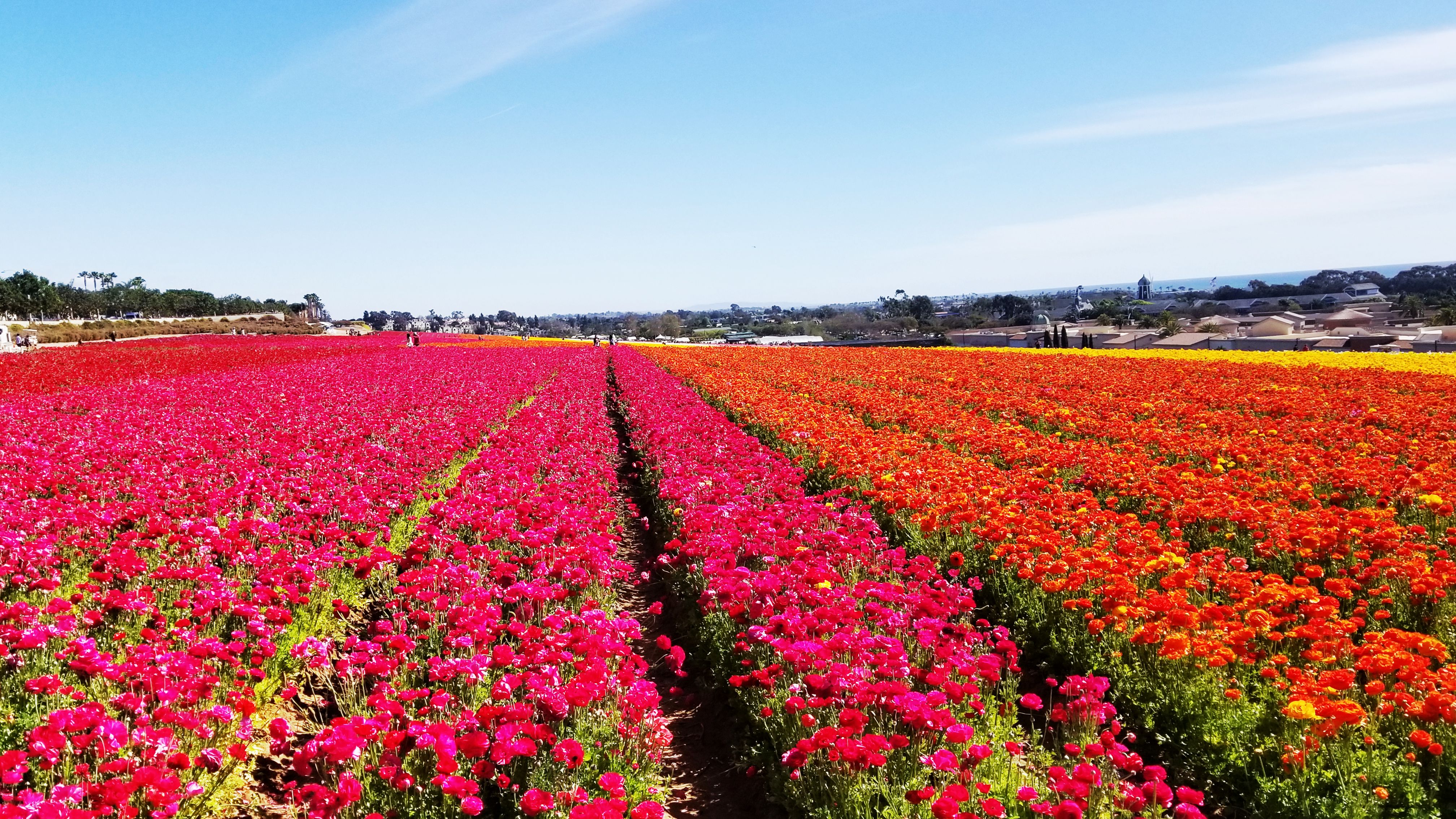 And then I remembered the Flower Fields in Carlsbad! This is a historic flower farm that grows giant ranunculus plants to sell, and they open to the public for the months of the year when the flowers are in bloom.